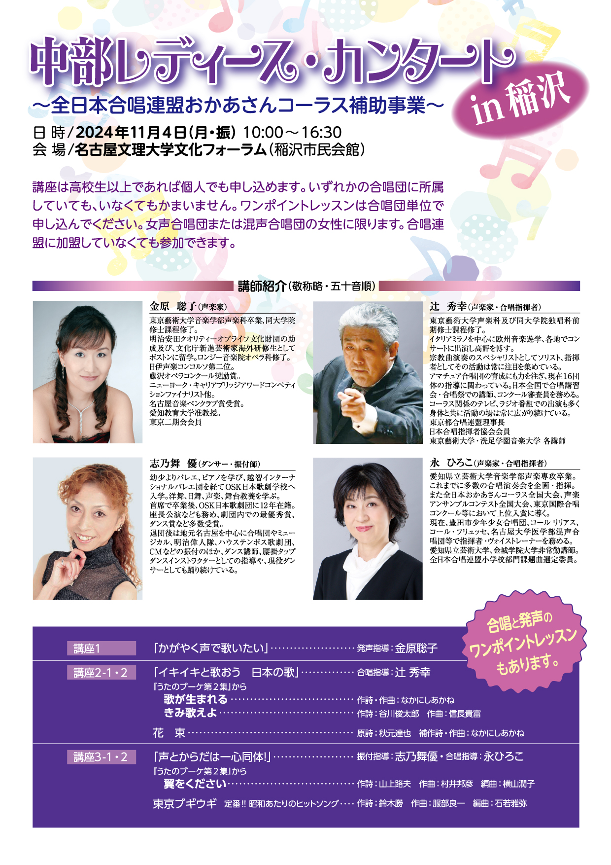 個性あふれる4人の先生方と合唱大好きな受講生の皆さんのおかげで楽しく充実したカンタートになりました。